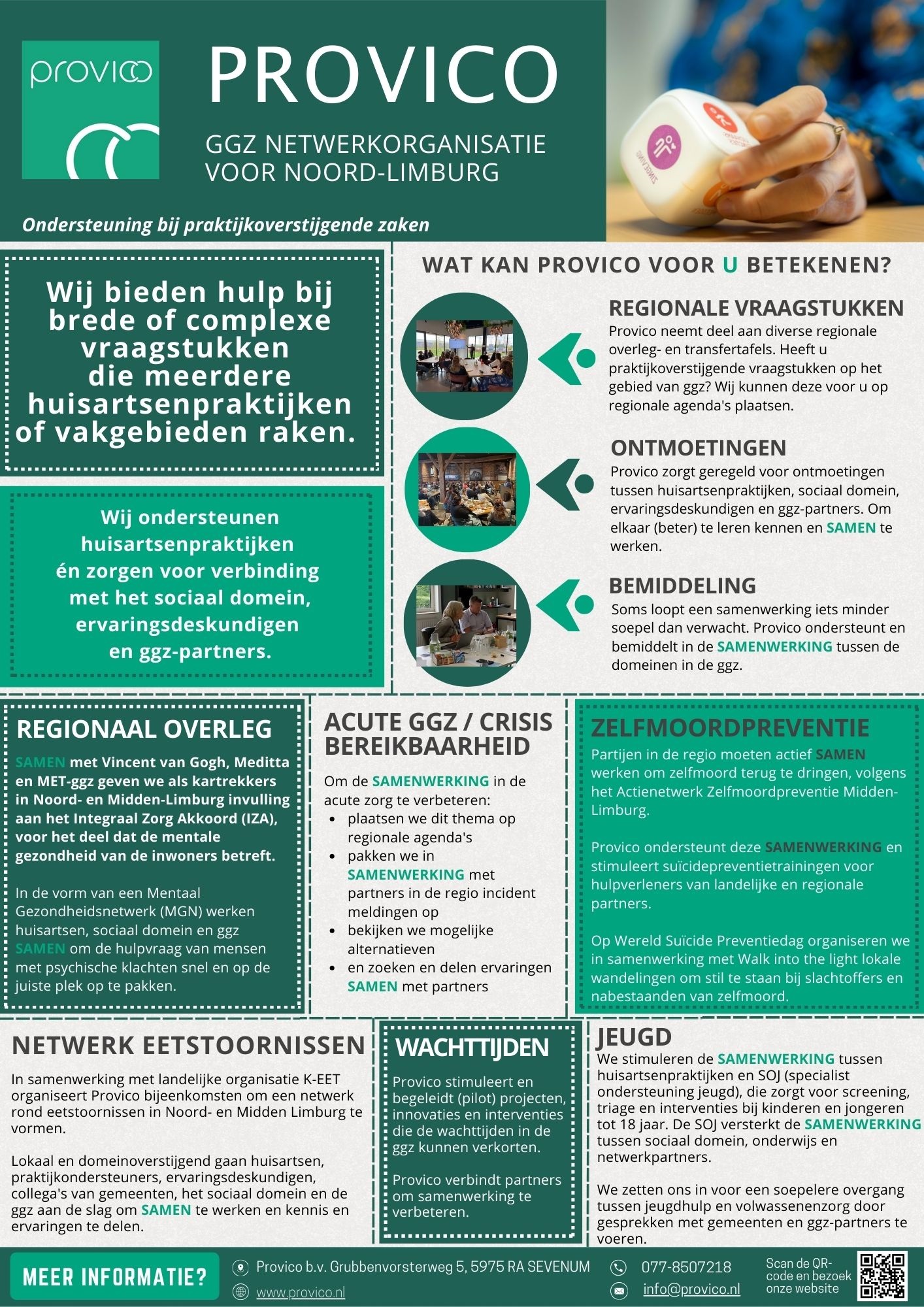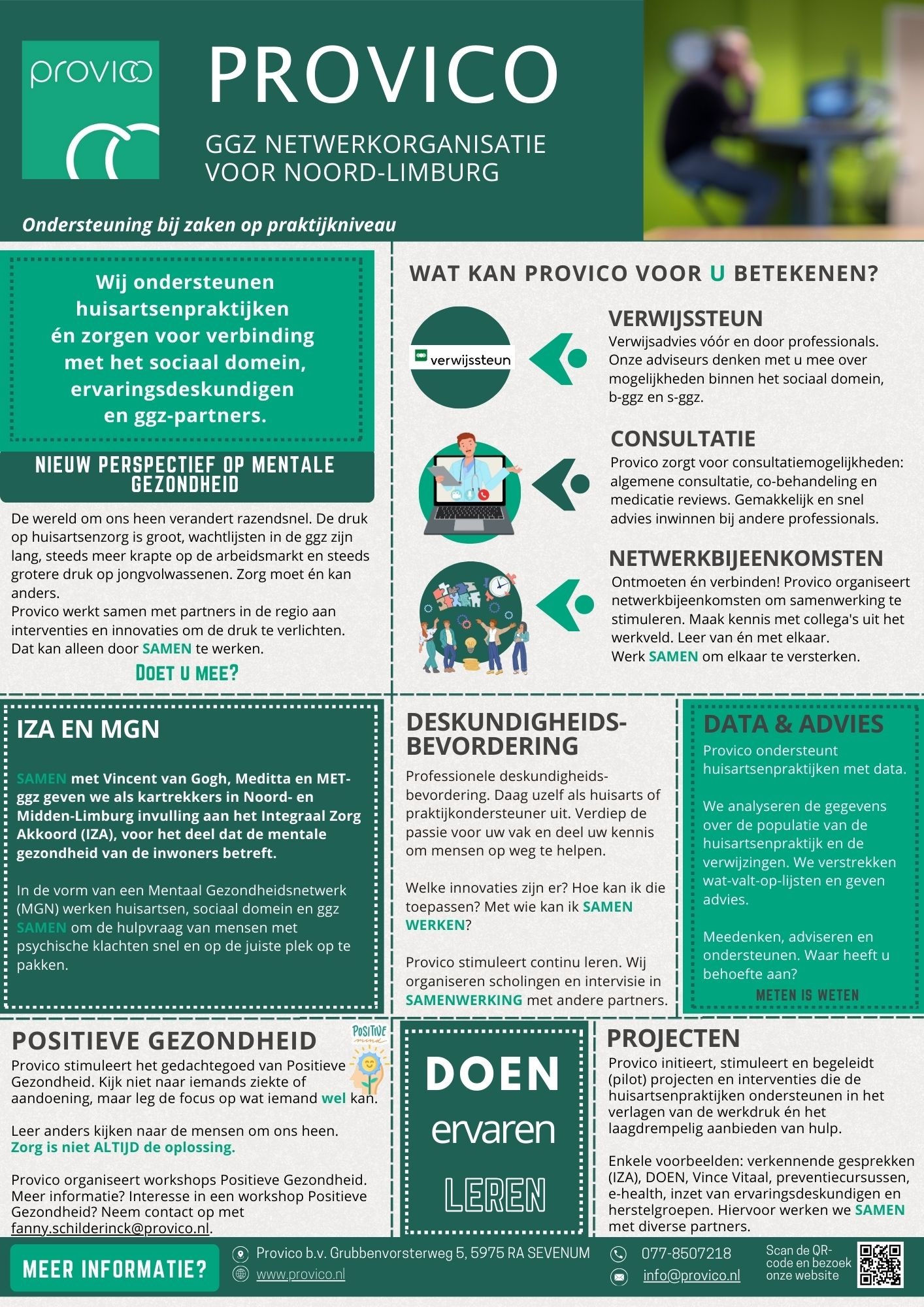 Op de twee onderstaande infographics zie je wat we voor de bij ons aangesloten huisartsenpraktijken in Noord-Limburg doen: